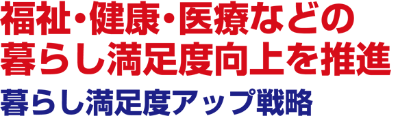在宅医療・介護の充実 / 芦屋中央病院の医療体制の充実を推進 / がん検診・特定健診事業の充実 / 骨髄等移植ドナー助成制度の創出 / 介護予防事業の推進 / 自治区サロン事業の推進 / 老人憩いの家建て替え計画を策定 / 障がい福祉サービスの充実 / NHK受信料の半額補助の対象拡大 など
