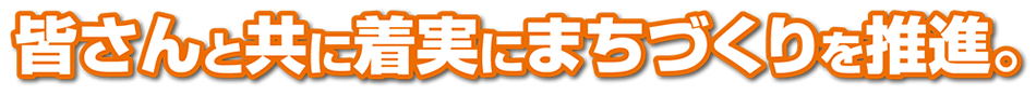 住民参画まちづくり条例の理念に基づき、皆さんと共に創るまちづくりにまい進します。